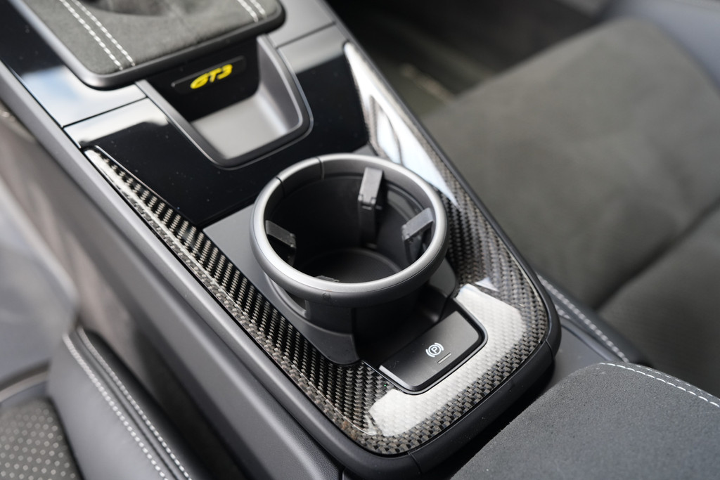 - 6E5 Race-Tex Armsteun middenconsole met Porsche embleem