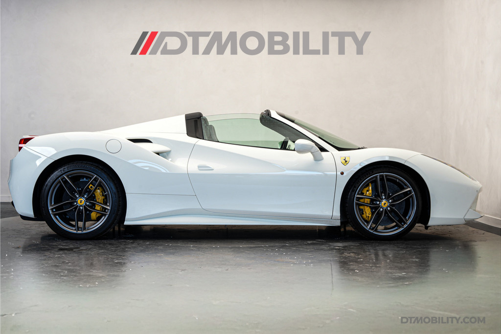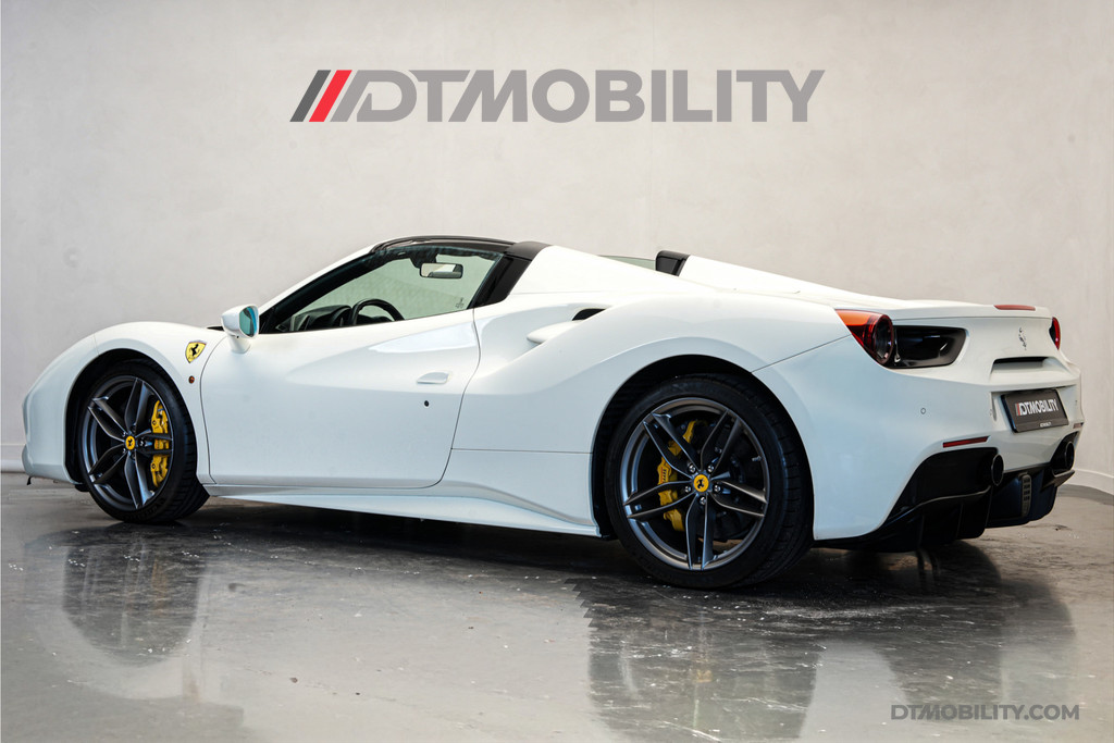 Nieuw in onze voorraad deze prachtige Ferrari 488 Spider van 2018! Van buiten uitgevoerd in Bianco Avus met 20" Forged Dark Painted wielen. Van binnen met de Daytona Racing Seats in zwart leder met wit stiksel én de 'Cavallino' in de hoofdsteun.