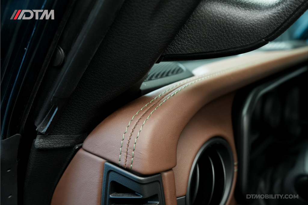 Authentiek Ferrari-leder: Het volledige interieur is bekleed met hoogwaardig leder in de kleur 'Chocolate', rechtstreeks afkomstig uit de Ferrari-productie in Italië.