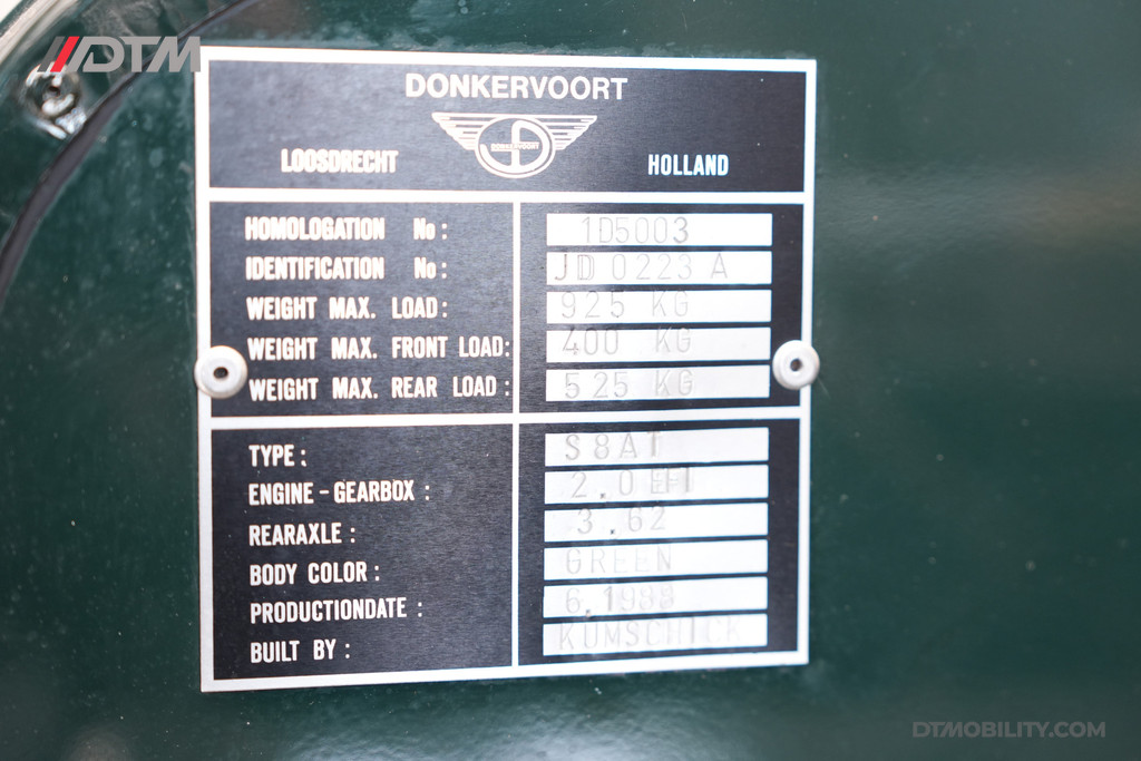 Ontdek de opwindende wereld van de autosport met deze prachtige Donkervoort 2.0 S8AT uit 1988. Dit exclusieve en zeldzame model (slechts 23 stuks op Nederlands kenteken) verkeert in een uitmuntende staat en biedt een unieke rijervaring welke elke autoliefhebber waardeert.
