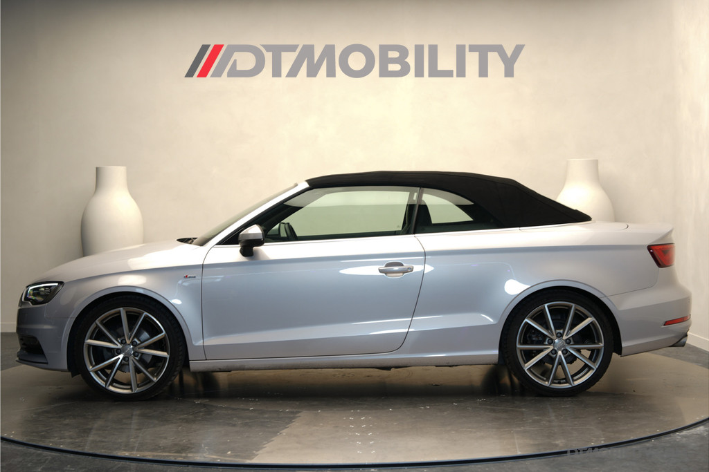 Stap in en geniet van de zon in deze schitterende Audi A3 Cabriolet. Een unieke verschijning dankzij de prachtige kleur Lotusgrau Metallic en het exclusieve interieur met Audi RS-stoelen.