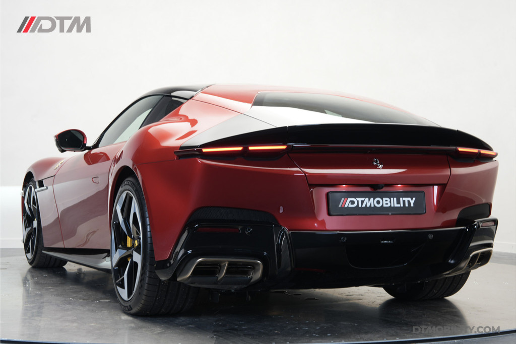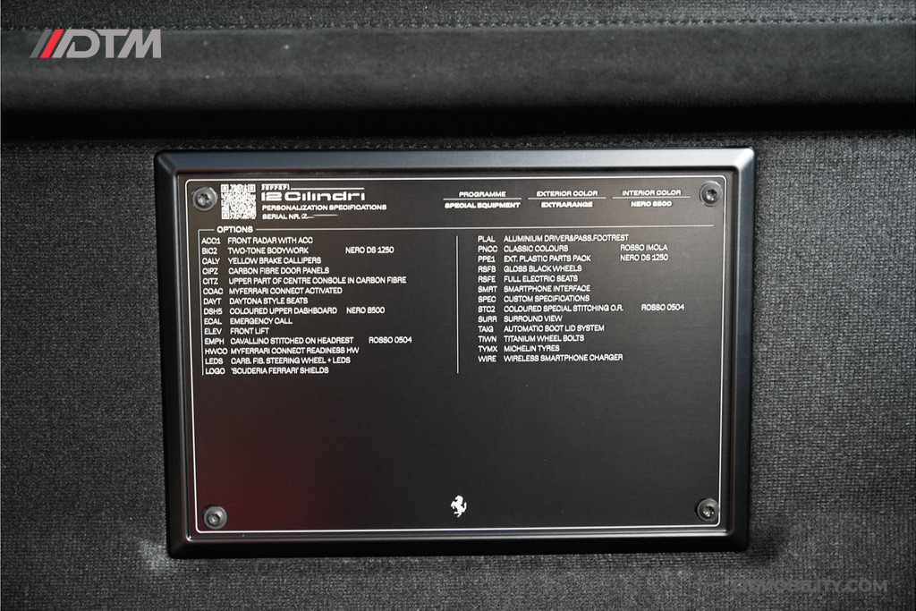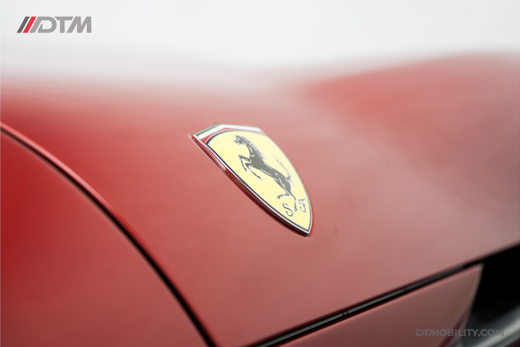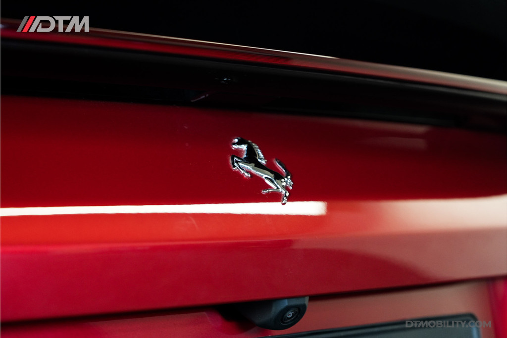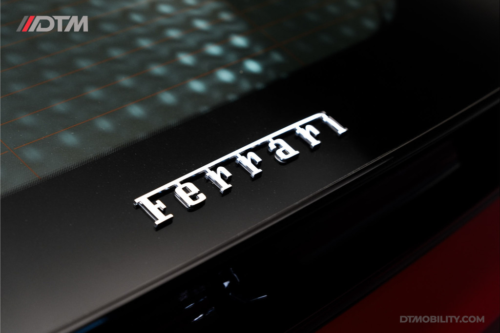 Dit exemplaar is met buitengewoon veel smaak samengesteld. De klassieke rode lakkleur (Classic Colours Rosso) vormt een spectaculair contrast met de Two-Tone Nero carrosseriedelen en de hoogglans zwarte velgen met titanium wielbouten. Gele remklauwen en de iconische 'Scuderia Ferrari' schilden maken het uiterlijk perfect af.
