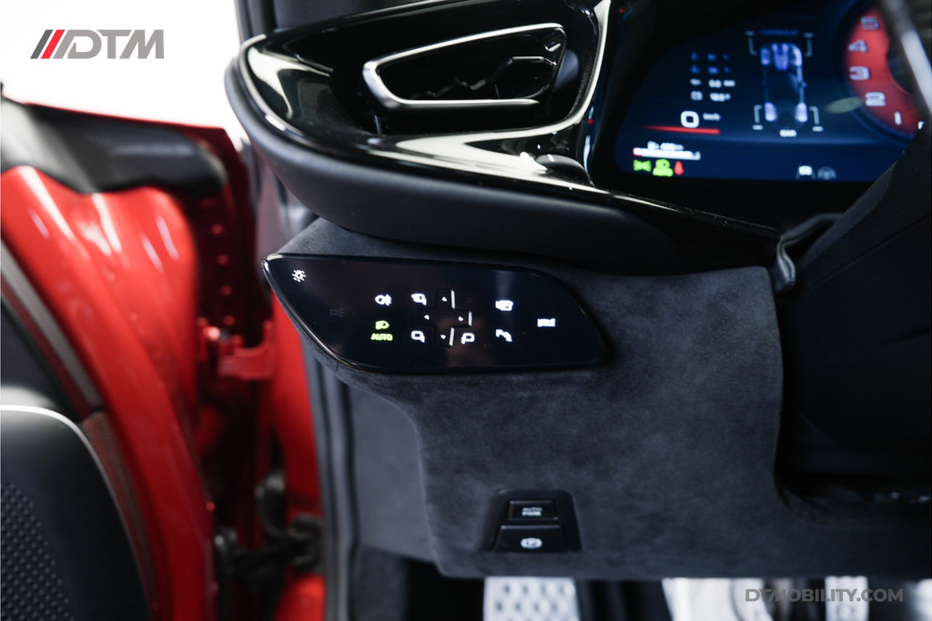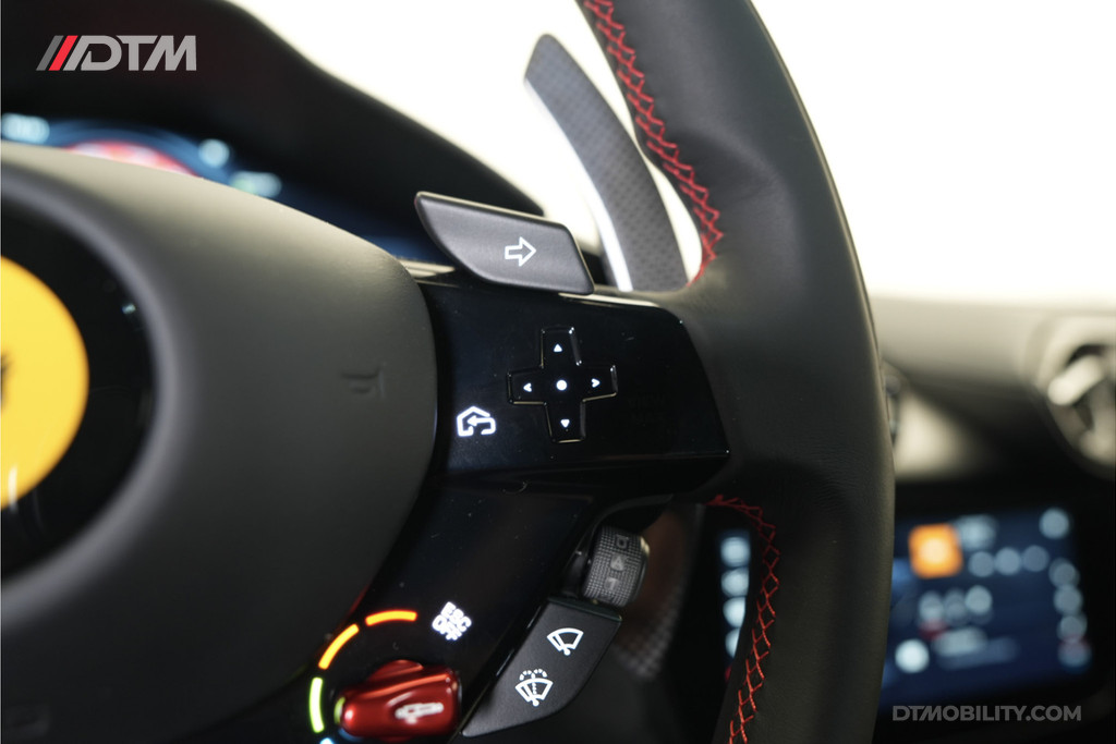 Binnenin wordt u verwelkomd in een cockpit waar luxe en autosport samenkomen. De volledig elektrisch verstelbare Daytona-stijl stoelen zijn voorzien van prachtig rood contraststiksel en de befaamde geborduurde Cavallino in de hoofdsteunen. Dankzij het veelvuldige gebruik van carbon fiber – waaronder het stuurwiel met LED-schakelindicatoren, de deurpanelen en de middenconsole – straalt het interieur pure prestatie uit.