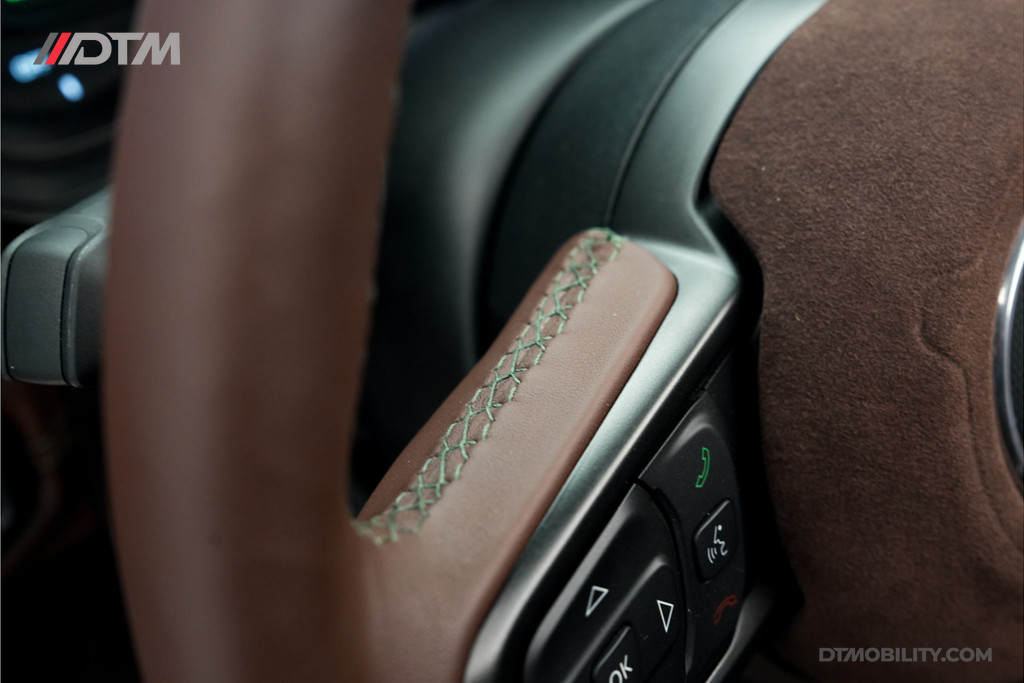 Authentiek Ferrari-leder: Het volledige interieur is bekleed met hoogwaardig leder in de kleur 'Chocolate', rechtstreeks afkomstig uit de Ferrari-productie in Italië.